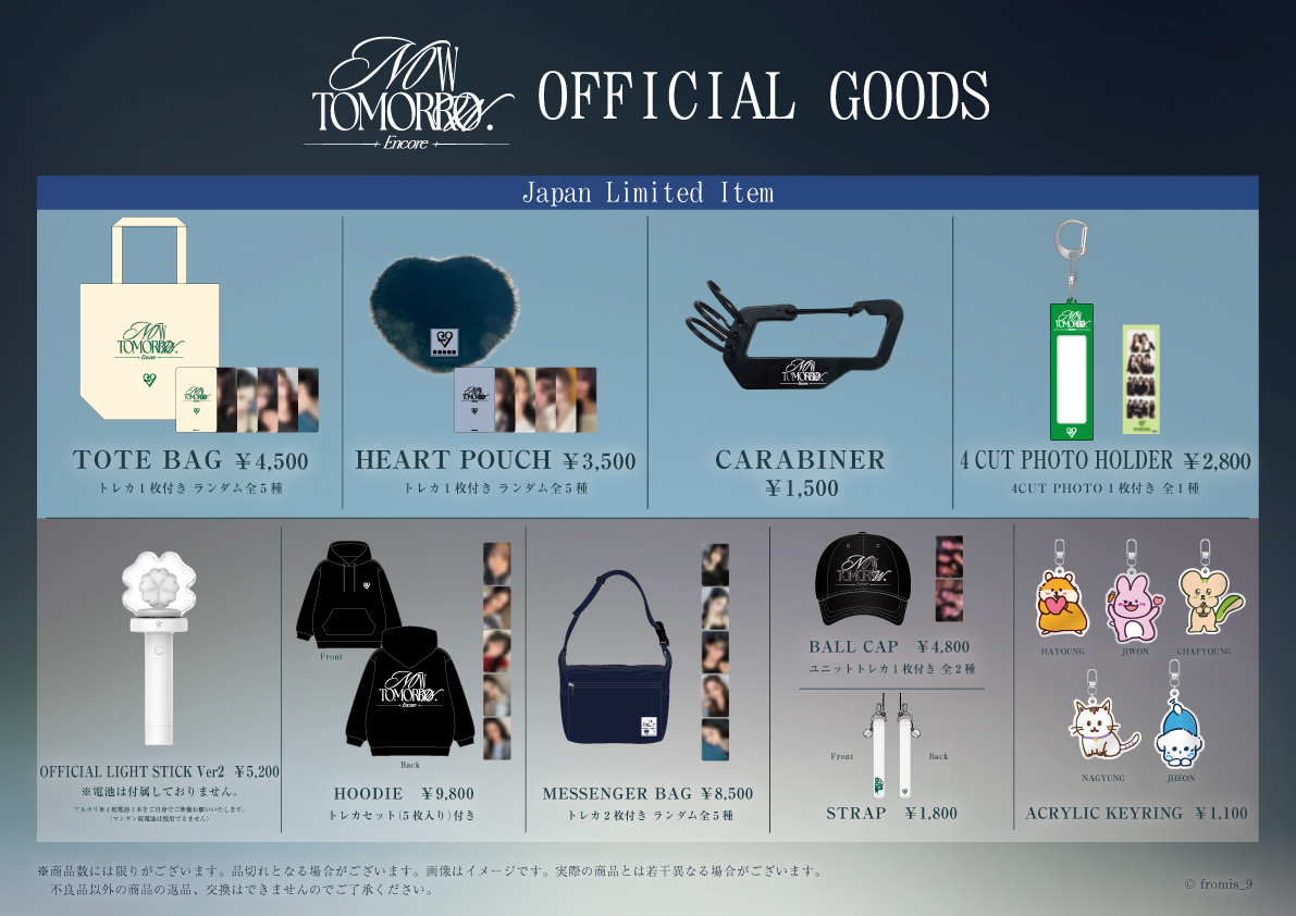 『2025-26 fromis_9 WORLD TOUR ENCORE [NOW TOMORROW.] IN TOKYO』OFFICIAL GOODS LINEUP公開!&会場でのグッズ販売について